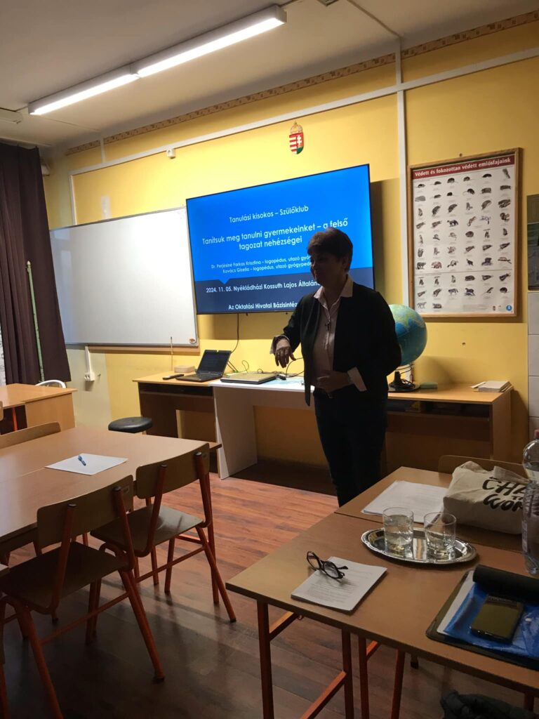 Bázisintézményi program keretén belül 2024. november 26-án Dr. Perjésiné Farkas Krisztina és Kovács Gizella utazó gyógypedagógusok ismét a Nyékládházi Kossuth Lajos Általános Iskolában tartottak előadást.