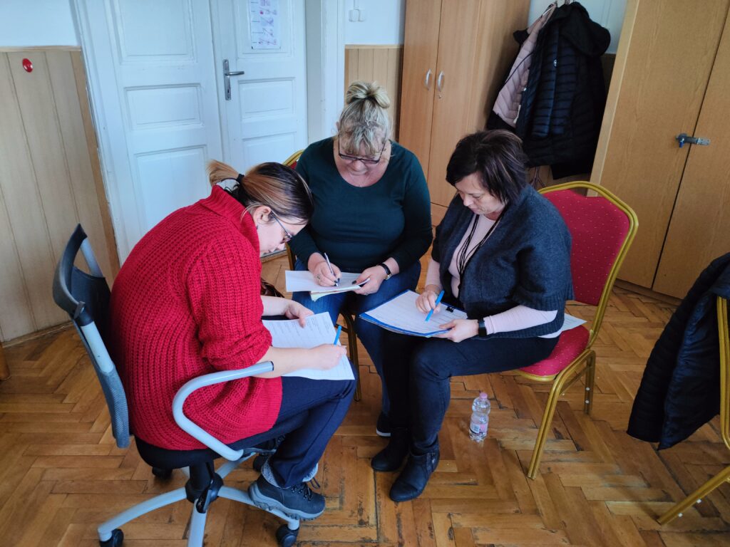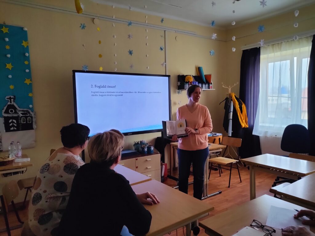 A harmadik alkalom során a résztvevők részletekbe menően megismerhették a multiszenzoros történetmesélés módszerét: a történetek adaptálását, annak lépéseit, módszertani sajátosságait. Egy rövid bevezetés után a résztvevők kiscsoportos munkában adaptáltak egy-egy történetet. Így mindenki kipróbálhatta, hogyan, milyen lépéseken keresztül készítsen el egy multiszenzoros mesét.