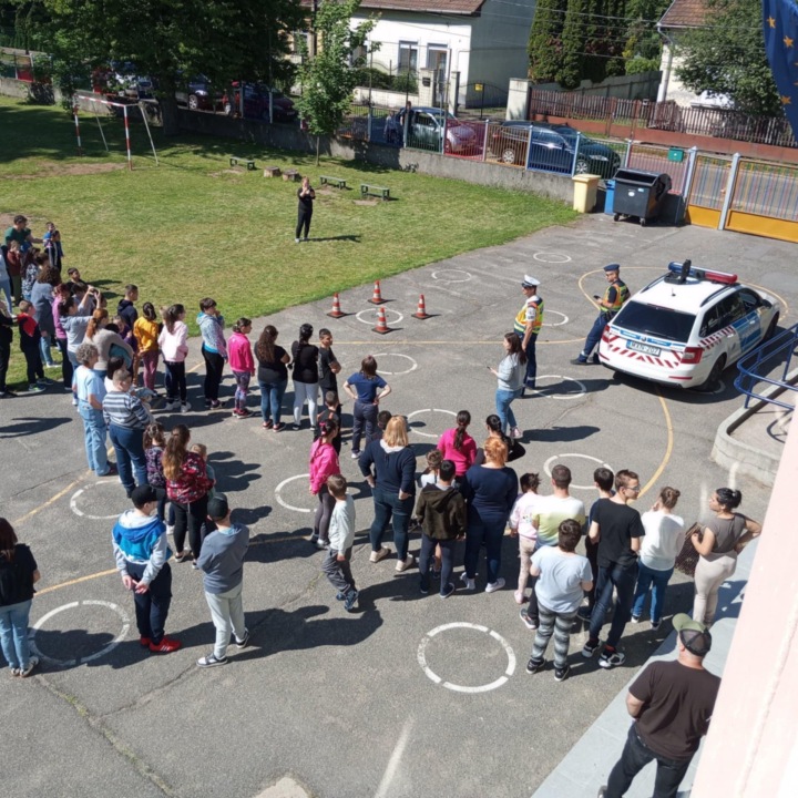 Május 28-án a Tüskevár-hét keretein belül ellátogatott hozzánk Baffyné Kormos Krisztina a B.-A.-Z. Vármegyei Balesetmegelőzési Bizottság titkára 2 kollégájával, akik közlekedésbiztonsági előadást és rendőrségi drónos bemutatót tartottak tanulóink számára.
