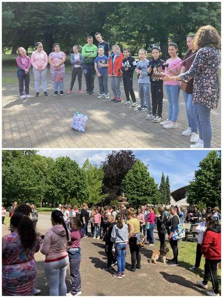 A csengettyűs megnyitó után, a parkban található szobrokat, épületeket vagy játszótereket kellett megkeresni és fotókat készíteni az osztályoknak.